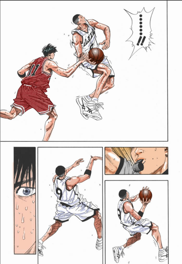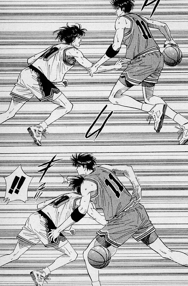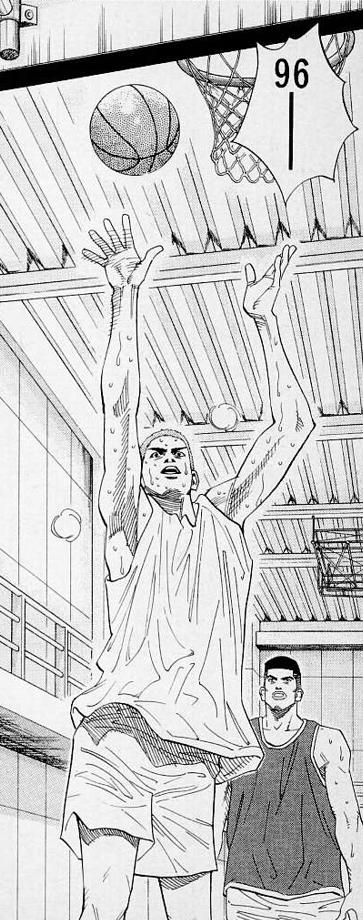 그렇게 자신의 원 테크의 정점인 정우성을 다른 테크를 타면서 이기게 됩니다. 이 시합에서 서태웅은 개인 성적이 강백호보다도 못합니다. 그렇다 하더라도 시합을 승리로 이끈 것은 에이스인 서태웅의 각성이었죠.