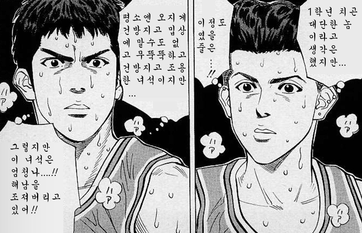 작중 강백호는 주인공인 만큼 유독 성장하는 모습이 많이 나옵니다. 초반에는 아무것도 할 줄 아는 게 없었지만,