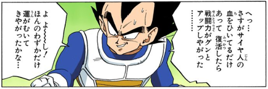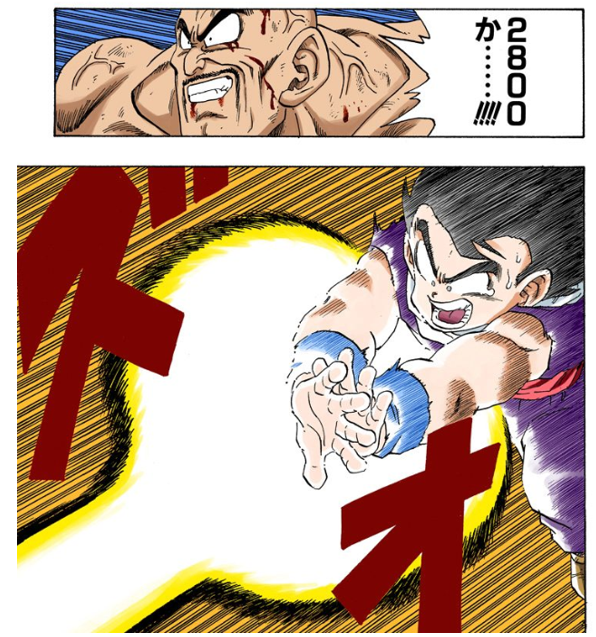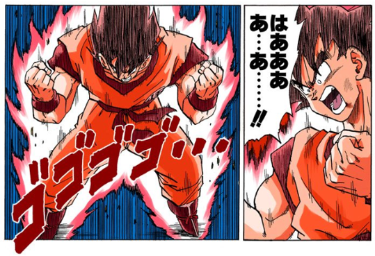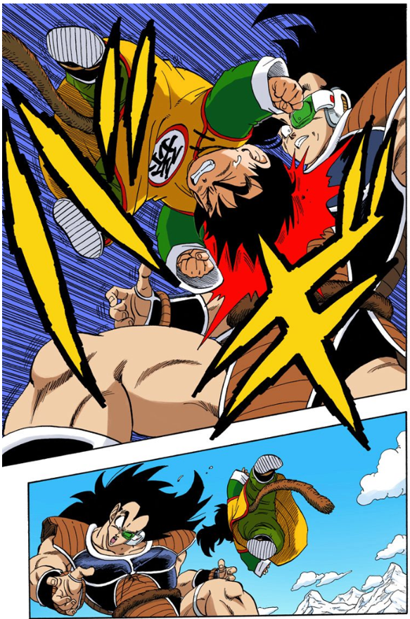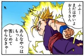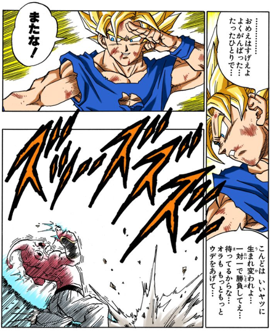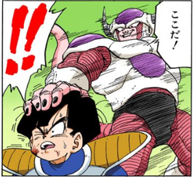 분노를 폭발시키며 프리저에게 연타를 날린 뒤,
